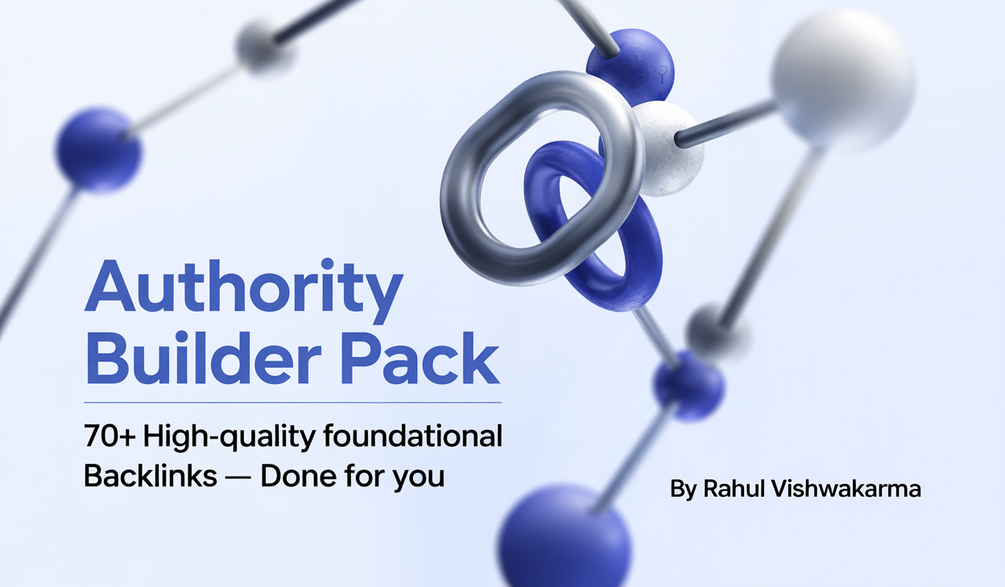 The Authority Builder Pack is a one-time service that sets up 70+ high-quality foundational backlinks for your website, including 30+ authority profile links and 40+ contextual article backlinks.